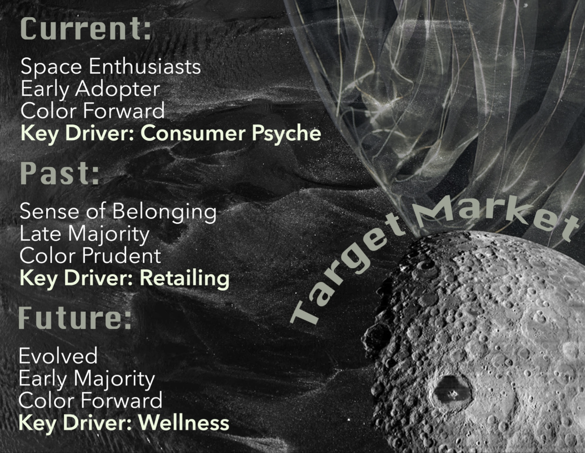 Our influences draw from space and otherworldly themes, including Prada’s tech-forward space suits that blend fashion with innovation.