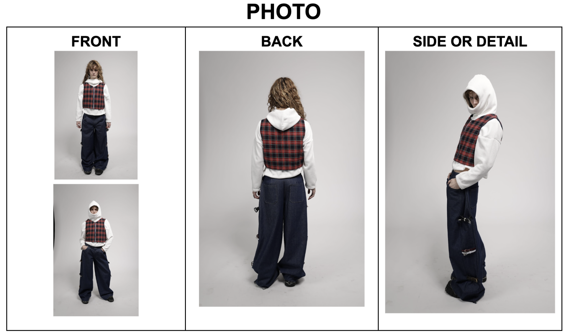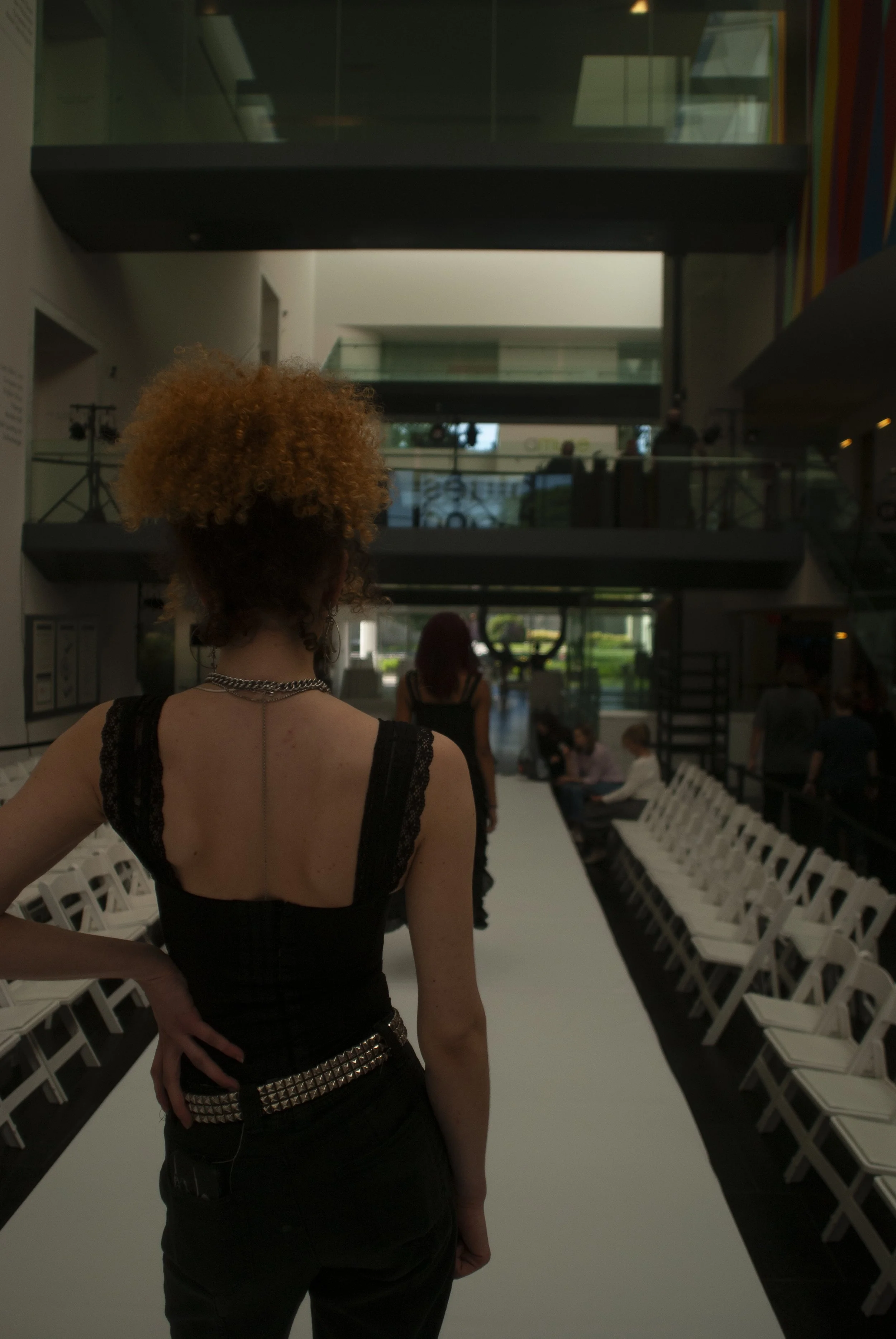 My responsibility was to document each fitting, recording the garment each model wore, the specific adjustments needed (e.g., hemming, taking in two inches), and evaluating which of the model’s shoes could potentially complement the outfit. Once fittings were completed, Wendy Benson and I finalized the model lineup and organized the show segments.